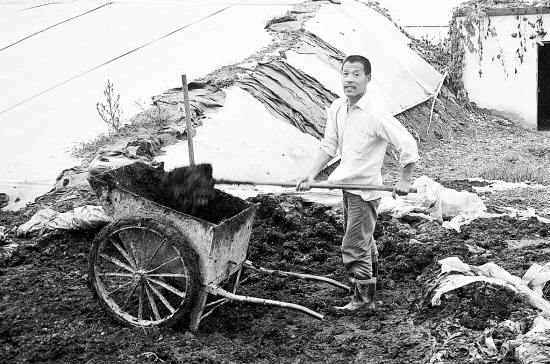 昨日,一名菜农往大棚内运送农家肥。目前天气转凉后,蔬菜大棚内湿度增大,易发生灰霉病和疫病危害,我市菜农适时对棚内蔬菜重施肥水,加强病虫害的防治。(记者 沈湛 摄)