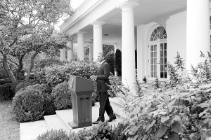 10月20日,在美国首都华盛顿的白宫玫瑰园,美国总统奥巴马就卡扎菲之死发表声明。新华社记者 张军 摄