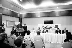 10月20日,在利比亚首都的黎波里,利比亚执政当局官员在新闻发布会上表示,执政当局将于本周六(22日)在班加西宣布利比亚全国解放。新华社记者 李木子 摄