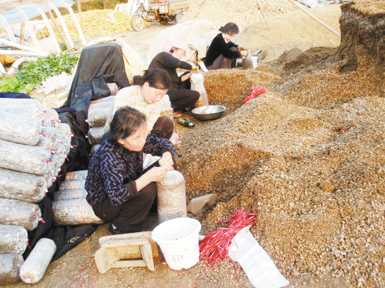 10月22日,商水县舒庄乡的菌农正在装菌种。据悉,该乡今年共有600多户群众培育食用菌。眼下,菌农正抓紧时间装菌种,确保食用菌早进棚、早收获、早创收。(乔连军 摄)