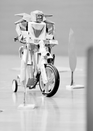 中国科技大学举办机器人大赛 10月23日,在中国科技大学举办的机器人大赛上,一款机器人进行骑车避障表演。右图是一款机器人正在进行攀爬表演。10月22日至23日,中国科技大学第十一届robogame机器人大赛举行,共有52支队伍分两组展开了激烈的角逐。本次大赛分为家庭服务机器人和杂技表演机器人两个主题,参赛选手全部为在校大学生。 新华社发