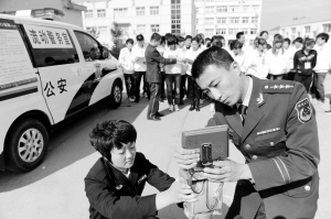 “流动警务室”服务城乡流动群体 10月24日,刘萌警官(前右)在调试图像采集设备,准备现场为青岛启龙制衣厂职工办理暂住证。2010年以来,青岛市城阳公安边防大队结合辖区城乡结合部流动人员密集的特点,广泛开展警务进社区、进学校、进厂企、进乡村,通过便捷的“流动警务室”平台,上门为群众办理暂住证、宣讲法规、提供法律咨询和援助等,切实加强城乡流动群体的治安管控和服务。 新华社记者 李紫恒 摄