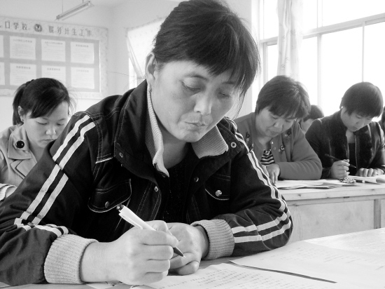商水县张庄乡利用秋收秋种后的农闲时机,对27个行政村的计生专干进行业务知识培训,进一步提高计生队伍整体素质和服务能力。截至目前,该乡今年已开展集中培训5次。图为该乡在乡人口学校对村计生专干进行业务知识考试。(张丽娟 摄)