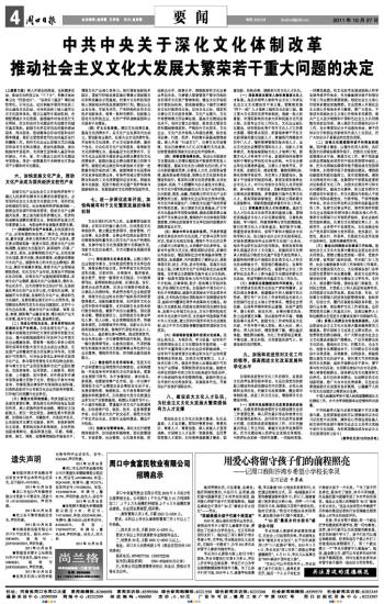 中共中央关于深化文化体制改革