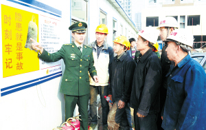 河北省沧州市新村边防派出所针对辖区在建工程项目多、外来务工人员多、安全生产作业隐患多等实际情况,主动走进工地,向外来务工人员宣传安全生产规章制度,讲解安全防护知识,提醒他们时刻注意安全,安全生产。 新华社发