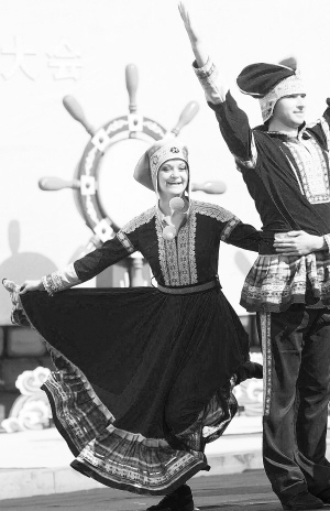 ▲海岛渔港沈家门举办国际民间民俗大巡游 10月28日,演员在表演挪威卑尔根渔港民俗舞蹈。当日,有着600多年历史的浙江舟山沈家门渔港举办以“渔港风情”为主题的国际民间民俗大巡游,来自国内外的1000多名演员、群众组成的巡游队伍展现了包括渔家婚俗、海岛“桃花会”、虾灯、秘鲁剪刀舞、挪威传统舞蹈等渔港特色民俗文化。