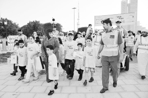 ▲阿布扎比举行预防乳腺癌全民行走活动 10月27日,在阿联酋阿布扎比举行的预防乳腺癌全民行走活动中,警察在现场照顾参与活动的孩子。为响应全球每年10月的“世界乳腺癌防治月”,阿联酋首都阿布扎比海滨大道27日举行“关注乳房健康,预防乳腺癌”全民行走活动。阿布扎比社会各界人士数百人参加活动,组织者通过发放预防乳腺癌的宣传材料,向公众特别是妇女们宣传和普及保护乳房,早期发现、诊断和预防乳腺癌的知识。