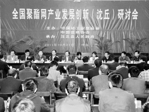 中国造纸协会常务副理事长、高级工程师曹朴芳,中国轻工业联合会科技环保部副主任教授级高工于学军,中国造纸协会副秘书长、高级工程师张新平,中国造纸协会副秘书长齐晓东,河南省造纸协会秘书长乔宪生,河南省造纸协会副秘书长耿海燕等对聚酯网产业状况、未来发展趋势进行了分析,并对沈丘聚酯网产业发展提出意见和建议。
