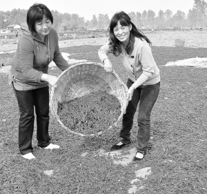 沈丘县积极推进农业经济结构调整,引导农民种植产量高、效益高的经济作物,促进农民增收、农业增效。老城镇南关村许前进通过土地流转,种植150亩红辣椒,亩产350多公斤,每公斤售价20元以上,收入相当可观。图为沈丘县老城镇南关村村民在收晒红辣椒。(韦伟 迟驰 摄)