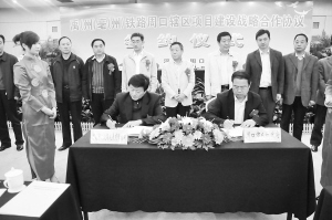 禹亳铁路改建项目,是在既有窄轨铁路基础上进行的改建和新建准轨铁路项目,是河南省 “十一五”规划建设的地方铁路四条大通道之一。该项目全长320公里,预计总投资70亿元,年设计运量在1200万吨,图为禹亳铁路周口辖区项目建设战略合作协议签约仪式现场。(记者 王映摄)