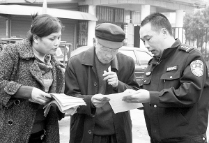 昨日,川汇区七一路办事处颍河社区的工作人员和辖区民警一同深入颍河小区向居民散发“齐抓社会综合治理 共建平安和谐家园”宣传单。为认真落实省、市集中打击整治“百日会战”会议精神,川汇区在全区开展为期3个月的百日会战活动,严厉打击抢夺、抢劫、入室盗窃等突出违法犯罪活动,保护人民群众生命财产安全。(记者 王映摄)