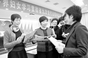 11月2日,省九次党代会代表李华在向来自各个行业的妇女姐妹们传达省九次党代会精神。省九次党代会闭幕后,来自我市各条战线的党代表一回到工作岗位,立即行动起来,传达学习、贯彻落实大会精神,以最快的速度把党代会精神传达到全市广大党员、干部群众中去。(记者 王映 摄)
