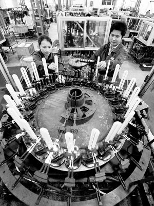 江西贵雅照明有限公司员工在给节能灯灯管封口(2009年3月23日摄)。11月4日,国家发展和改革委员会等部门公布按功率大小逐步淘汰白炽灯路线图,并决定自明年10月1日起禁止进口和销售100瓦以上普通照明白炽灯。这为大力推广节能灯提供了前所未有的机遇。