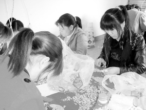 近日,商水县魏集镇的姑娘们正在本镇的手工艺厂制作工艺品。在“关爱女孩行动”中,魏集镇工商业联合会等为女青年提供就业岗位1000多个,使她们打工不用出镇。 苏建广 摄