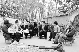 为深入开展社会主义法治理念再学习再教育,扶沟县人民法院把“调解优先、调判结合”工作原则贯穿于执法办案的全过程,全力促进社会和谐,对于一些争议不大的婚姻家庭纠纷、小额借贷、相邻关系、损害赔偿等案件,深入案发地进行调解。图为近日该院练寺法庭法官深入到农户家中就已育有二儿一女的一对80后夫妇离婚纠纷案调查取证并作调解和好工作。邹鹏举 高同林 摄