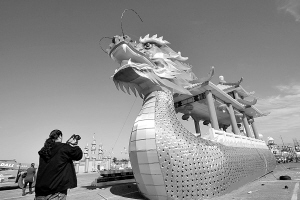 中国自贡彩灯将首次亮相美国 11月10日,在美国加利福尼亚州圣克拉拉一家游乐园,一名记者拍摄正在施工中的龙舟彩灯。将于11月25日至2012年1月2日在美国加州圣克拉拉大美国游乐园展出的“天下第一灯嘉年华”自贡灯会于当天举办媒体预展。据悉,这将是中国自贡彩灯首次走进美国。 新华社发