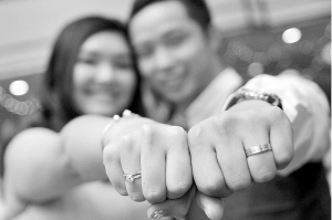 吉隆坡400对新人“光棍节”集体结婚 11月11日,在马来西亚首都吉隆坡,一对新人展示婚戒。400对吉隆坡新人在11月11日“世纪光棍节”当天集体登记结为夫妻,结束“光棍”身份。 新华社发