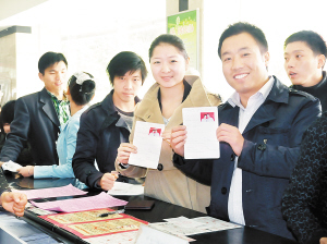 “照目前来看,前来登记的新人将超过百对。”工作人员杨秋慧告诉记者,如今的年轻人结婚对登记时间多有讲究,每逢特殊日子便会出现登记高峰,如2008年8月8日,2009年9月9日,2010年10月10日,今年的11月11日被人们称为“世纪光棍节”也不例外。
