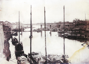 周家口这片沿河之地,在明朝以前,不过是一片荒郊野渡。殆至明初,偶有人在沙河北岸依寨结庐,渐次成墟,名永宁集(在今川汇区西岸)。永乐初年,沙南商水所辖子午街北头又成墟集,与北岸永宁集交替成市,为谋两集隔河贸易之便,乃冲子午街口辟一渡口,有周姓者操持摆渡,始有周家埠口之说。