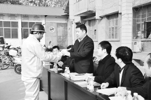 11月14日,川汇区举行文昌大道安置B、D区建设群众监督员聘书颁发仪式,区委副书记、宣传部长田庆杰向10名群众监督员颁发聘书,请他们对安置B、D区工程建设进度与质量随时进行监督,确保拆迁户尽快住上放心房。