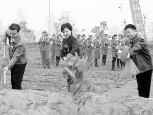 最后,出席仪式的领导共同为五个入驻产业集聚区项目的开工建设培土奠基(如图)。