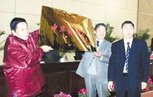 为表彰和推广沈丘发展诗词事业,推广精神文明和物质文明建设的先进经验,河南省诗词协会授予沈丘“中华诗词名县”称号。图为县委书记杨永志(右一)在授牌仪式现场。