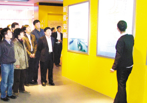 丰富的文化资源储备和厚重的历史文化底蕴是沈丘县文化产业提升品位的重要战略资源。图为县长皇甫立新(右三)参观工业园区文化栏。