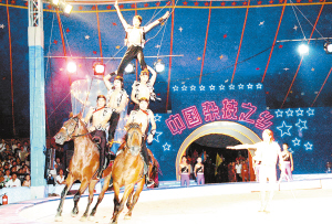 ■2004年10月下旬,第五届国际杂技艺术节在武汉举行。周口市杂技马戏团的节目《大飞轮》以精湛的技艺荣获铜奖。