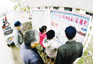 从2008年开始,市委宣传部、周口日报社联合启动党报阅报栏工程,由市级以上文明单位出资,在全市200个结对帮扶行政村安装党报阅报栏200座,总投资132万元。党报阅报栏主要分布在帮扶村文化大院内、村委门口附近及主要街道旁。周口日报社又筹资近百万元在周口市区医院、大中专学校、家属楼院安装党报阅报栏140多个。党报阅报栏成为普及先进文化、惠及群众精神需求的一道亮丽风景线。(记者 沈湛 摄)