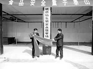 近日,沈丘县纸店镇生猪定点屠宰厂开业运营,标志着该县生猪屠宰管理工作步入了规范化阶段。纸店镇生猪定点屠宰厂位于镇西关办事处境内,占地400平方米,总投资近30万元,采用全程流水线操作,最大屠宰量每天可屠宰生猪80多头,可满足本镇及周边乡镇居民、饭店食用。(韦伟 迟驰 摄)