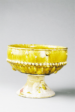 唐代黄釉乳丁纹豆