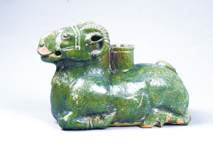 汉代绿釉卧羊尊