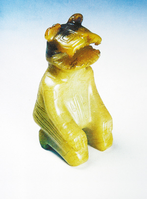西周虎首玉跽人