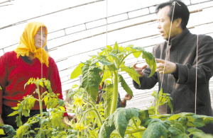 11月27日,授课老师在蔬菜大棚里为黄骅官庄乡菜农学员讲授西红柿种植技术。近日,河北省黄骅市官庄乡启动的蔬菜种植专业中专班正式开课。官庄乡的360名菜农可免费接受系统的蔬菜种植技术学习。(新华社发)