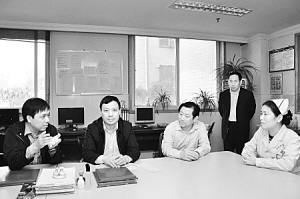 郸城县县长刘广明在县人民医院检查指导按病种收费工作。近日,县长刘广明来到县人民医院,鼓励全院医护人员大胆探索,更加科学、合理、严谨地开展按病种收费工作,让党和国家的惠民政策落到实处,让参和农民得到实惠。(记者 卢好亮 通讯员 孙小明 摄)