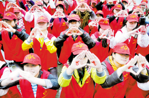 11月29日,四川省南充信息工程职业学校的青年志愿者展示自己制作的红丝带。当日,四川省南充市高坪区疾控中心和高坪区团委在南充信息工程职业学校举行“行动起来,向‘零’艾滋迈进”预防艾滋病宣传教育活动,迎接12月1日第24个世界艾滋病日的到来。(新华社发)