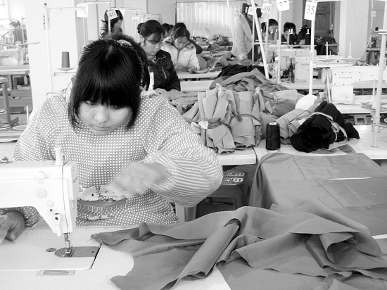 1月14日,舒庄乡留守妇女在诚诚服装厂生产车间加工服装。今年以来,该乡通过建立留守妇女档案,与20多家民营企业签订用工协议,并开展岗前技能培训,使2000多名留守妇女实现家门口就业。 (记者 岳建辉 通讯员 乔连军 摄)