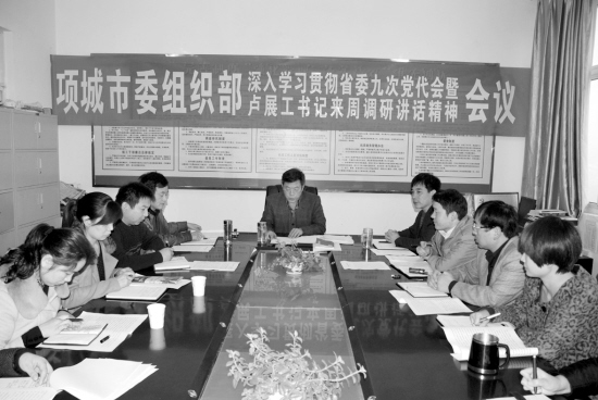 近日,项城市委组织部召开学习贯彻省委九次党代会暨卢展工书记来周调研讲话精神会议,项城市委常委、组织部长郭峰要求大家要掌握精神实质,结合项城实际,围绕组织目标任务来谋划,围绕新情况、新问题来运作,真抓实干,务实到位。 记者 杨光林 通讯员 王照明 摄