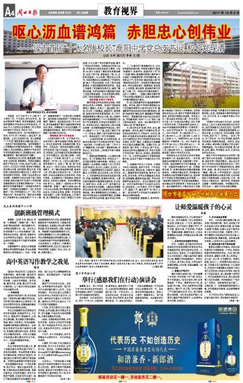 四、强力推进教学改革,提高教育教学质量。多年来,淮阳中学每年都要派出各个层面教师参观学习省内外知名中学,邀请教育专家来校宣讲先进的教育理论,推进“高效课堂”教法改革,激励教师开展教学研究,奖励教师参与省市县优质课评选。学校教务部门利用“三三九”表优工程大树先进典型,相当一部分教师被评为“课改之星”和“教学能手”。
