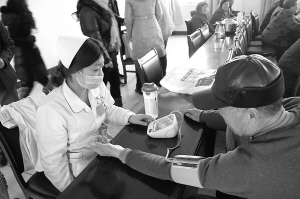 在健康知识讲座前,医院组织医务人员免费为每位与会离退休老干部进行了健康体检、发放了课件资料。