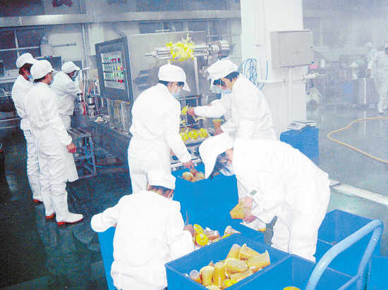 现代化的“厨房”内,工人们正在认真地忙碌着。(记者 李寒 摄)
