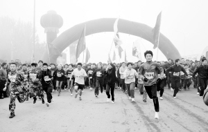 当日上午9时,1200多人浩浩荡荡地从大庆路桥南头出发,沿滨河路向东跑到东环路大桥,再折回到起点,全程约6.3公里。
