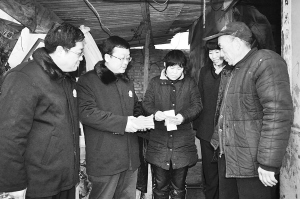12月5日下午,太康县人民法院的法官们冒雨上门将5.6万元执行款送到申请人徐某手中,徐某激动得连声道谢。 李康 曹英时 摄