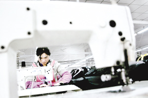 对招商引资项目实行“一站式办公、一条龙服务”,是郸城县优化投资环境的一大特色。该县简化招商引资项目办事程序,实行事前、事中、事后全程跟踪服务,取得了显著效果。图为一名服装生产工人正在操作台前认真工作。