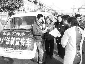 12月4日,商水县练集工商所围绕“深入学习宣传宪法,大力弘扬法治精神”主题,开展法制宣传系列活动。图为该所执法人员走上街头宣传普法知识时的情形。 (苑国政 摄)
