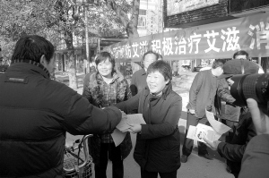 本报讯 (记者 侯俊豫 通讯员 杜忠勇 文/图)12月1日是第24个“世界艾滋病日”。县妇联与县卫生局联合组织县疾病预防控制中心、县人民医院、县公疗医院等单位,在新华大街、大同街等主干道及人流量较多的社区,统一开展以“行动起来,向‘零’艾滋迈进”为主题的大型宣传咨询活动。设立了6个宣传咨询台,县长胡景旭、县人大副主任霍伟、县政协副主席张继华及县卫生、妇联部门负责人参与宣传活动。