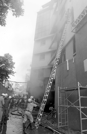 12月9日,在印度东部城市加尔各答,消防人员准备进入医院救援。