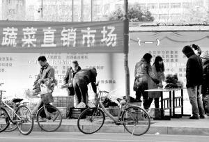 12月11日,市民们在郑州市内一个社区的流动蔬菜销售点买菜。近年来,随着城市框架不断加大,农贸市场逐渐减少,居民“买菜难”现象日渐突出。为此,郑州市允许菜农在市内指定区域设立流动菜摊,蔬菜不仅新鲜,价格也比市面上低三成左右,受到市民的欢迎。