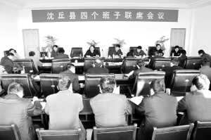 本报讯 (记者 韦伟 实习生 迟驰 文/图)12月1日,县委书记杨永志主持召开县四个班子联席会议,研究全县关于开展新型农村社区建设的初步意见,听取县委宣传部关于加强网络建设管理的意见、县住建局关于高速路出口西侧绿化规划建设的意见和关于集中开展工作调研月活动的意见。杨永志、皇甫立新等县领导出席会议。