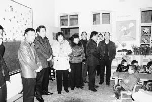 图为县人大副主任范鹏祥和县卫生局局长郝建军、局党组书记李俊海到县实验幼儿园察看糖丸喂服情况。(柴元红 摄)